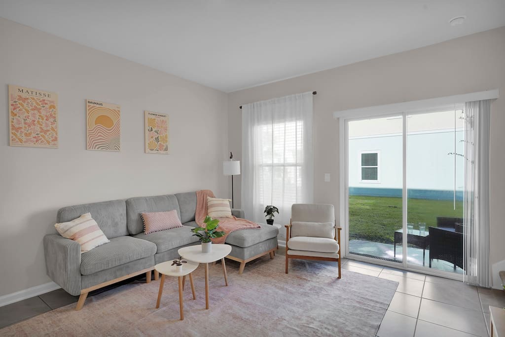 ★ Getting Around Our home is located in a quiet community just off the I-95 corridor, providing easy access to all the major attractions. ★ Parking & The Neighborhood ✔ private parking in the driveway and the attached garage. ✔ Walkability: You can easily walk to the community pool, splash pad, gym, and playground in just a few minutes. ✔ Outdoor Activities: the local dog park complex and green spaces are a treat for a walk, and we provide a beach bag and folding chairs for your outings!