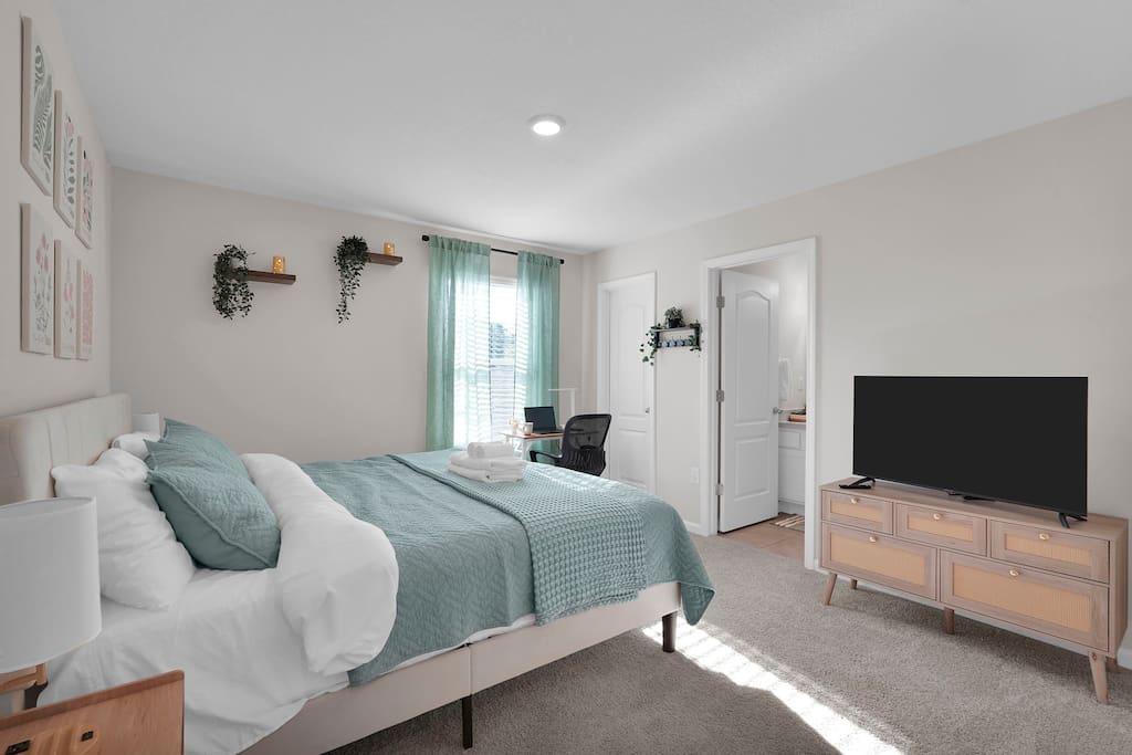 This newly updated two-story townhouse is designed with both families and comfort-seekers in mind, making it ideal for short getaways or long-term stays for professionals. ★House Features★ 2 private master bedrooms, each with: ✔ A full ensuite bathroom ✔ Walk-in closets ✔ Smart TVs for streaming ✔ Dedicated workspace with high-speed Wi-Fi — perfect for remote work or virtual school Main Floor Highlights: ✔ Open-concept living room with comfy sofa and TV ✔ Dining table with seating for 6 ✔ Fully equipped kitchen with a Full-size fridge, oven, microwave, Keurig coffee maker, blender, cookware, utensils, plates, and glassware, and a dishwasher for easy cleanup. ✔ Half bathroom for guest convenience ✔ In-unit laundry with washer & dryer ★Family Amenities★ ✔ Crib / pack-and-play ✔ High chair ✔ Kids’ utensils and tableware ✔ Board games and activities Outdoor Space: ✔ Private patio with tranquil lake views ✔ Outdoor seating for morning coffee or evening wine ★Pet-Friendly Perks★ ✔ Dogs welcome (sorry, no cats) ✔ Nearby community dog park ✔ Quiet, walkable streets for daily strolls ★Community Amenities (Just Steps Away)★ ✔ Resort-style swimming pool ✔ Splash pad for kids ✔ Fitness center/ gym Pool & Gym are just a 5-min walk from the house ✔ Playground ✔ Volleyball court ★Location Perks★ Perfectly situated between Jacksonville, Ponte Vedra, and St. Augustine, with quick access to I-95, shopping, dining, golf, and healthcare. Distances: ➔ I-95 < 5min ➔ 15 min to Mickler Beach ➔ 25 min to St. Augustine Beach + Historic Downtown ➔ 30 min to Jacksonville city center (+EverBank Stadium) ➔ 25 min to Ponte Vedra ➔ Minutes to St. John’s Town Center, Nocatee, Publix, Target, restaurants and more ➔ Close to St. Vincent’s and UF Health Flagler hospitals ➔ Across the street from top-rated golf courses This is the perfect home base, whether you're here for a sunny vacation, business trip, visiting loved ones, or simply looking for a peaceful spot to relax and reset.
