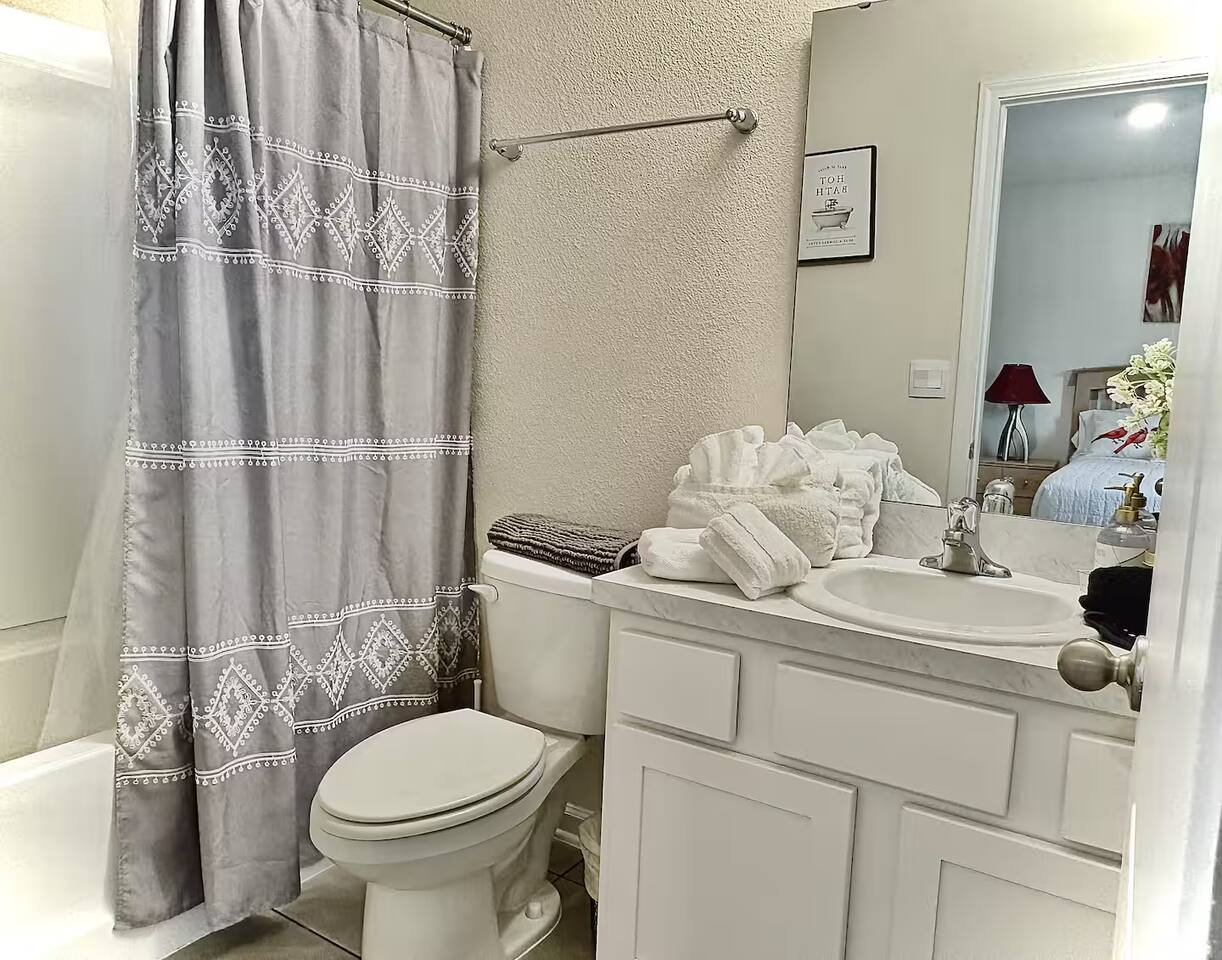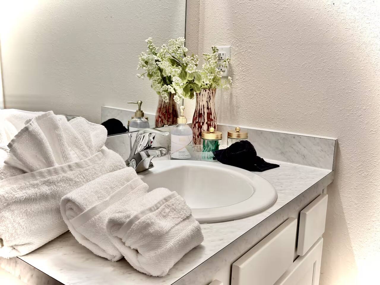 ✨ Your Perfect Florida Getaway Awaits! ✨ Prime Location | Private En-Suites | Resort-Style Amenities | Full Garage Soft sunlight spills across the lake as you sip coffee on the patio, the water gently reflecting the morning sky. Palms sway nearby, and the air carries the easy rhythm of coastal Florida. Here, between Jacksonville, Ponte Vedra, and historic St. Augustine, every day begins with possibility, whether you’re heading to the beach, a golf course, or a stroll through cobblestone streets. ★The Space★ This entire townhouse offers a comfortable balance of privacy and connection. On the first floor, an open-concept living area brings everyone together. The kitchen is fully equipped for cooking your own meals, while the living room offers space to unwind after a day of exploring. A half bathroom and in-unit washer and dryer add everyday ease. The lake-view patio just beyond the sliding doors invites quiet mornings or breezy evening conversations. A full garage provides secure parking and space for your beach gear or golf clubs. Upstairs, two private en-suite bedrooms create calm retreats. Each has a queen bed dressed in cotton linens, along with ample storage and room- darkening shades for restful sleep. A pull-out twin bed accommodates an additional guest, and both full bathrooms are stocked with essentials like towels, shampoo, and conditioner. ★Outdoor Living and Community Amenities★ Step outside to enjoy resort-style amenities. The community pool and splash pad offer fun for all ages, while the fitness center and playground add options for movement and play. A dog park welcomes furry friends, and nearby walking paths lead toward the lake. Outdoor furniture, a shared BBQ grill, and a backyard space make it easy to spend time in the fresh air. Guests also have access to free parking on-site and on the street. Comfort and Convenience Inside, you’ll find thoughtful touches throughout, air conditioning, central heating, Wi-Fi, and a dedicated workspace for remote work. ★Entertainment★ Options include HDTV with streaming access and books for slower afternoons. Families are well cared for, with a crib, pack ’n play, baby gates, and board games ready for use. ★Neighborhood★ Within minutes, you can reach I-95 for easy travel, pristine beaches, golf courses, and historic downtown St. Augustine. Publix, Target, and local restaurants are nearby for everyday needs. During winter, the celebrated Nights of Lights festival transforms St. Augustine into a shimmering display of warmth and charm. ★Perfect for★ Families, beach lovers, medical professionals, and travelers seeking a comfortable stay near the coast. Pet-friendly and suited for both short visits and extended stays, this home pairs the ease of a private residence with the amenities of a resort community—a calm retreat close to everything you came to experience. Ready to create unforgettable memories in the heart of Florida's First Coast? Book now and start counting down to your perfect getaway! 🌴☀️